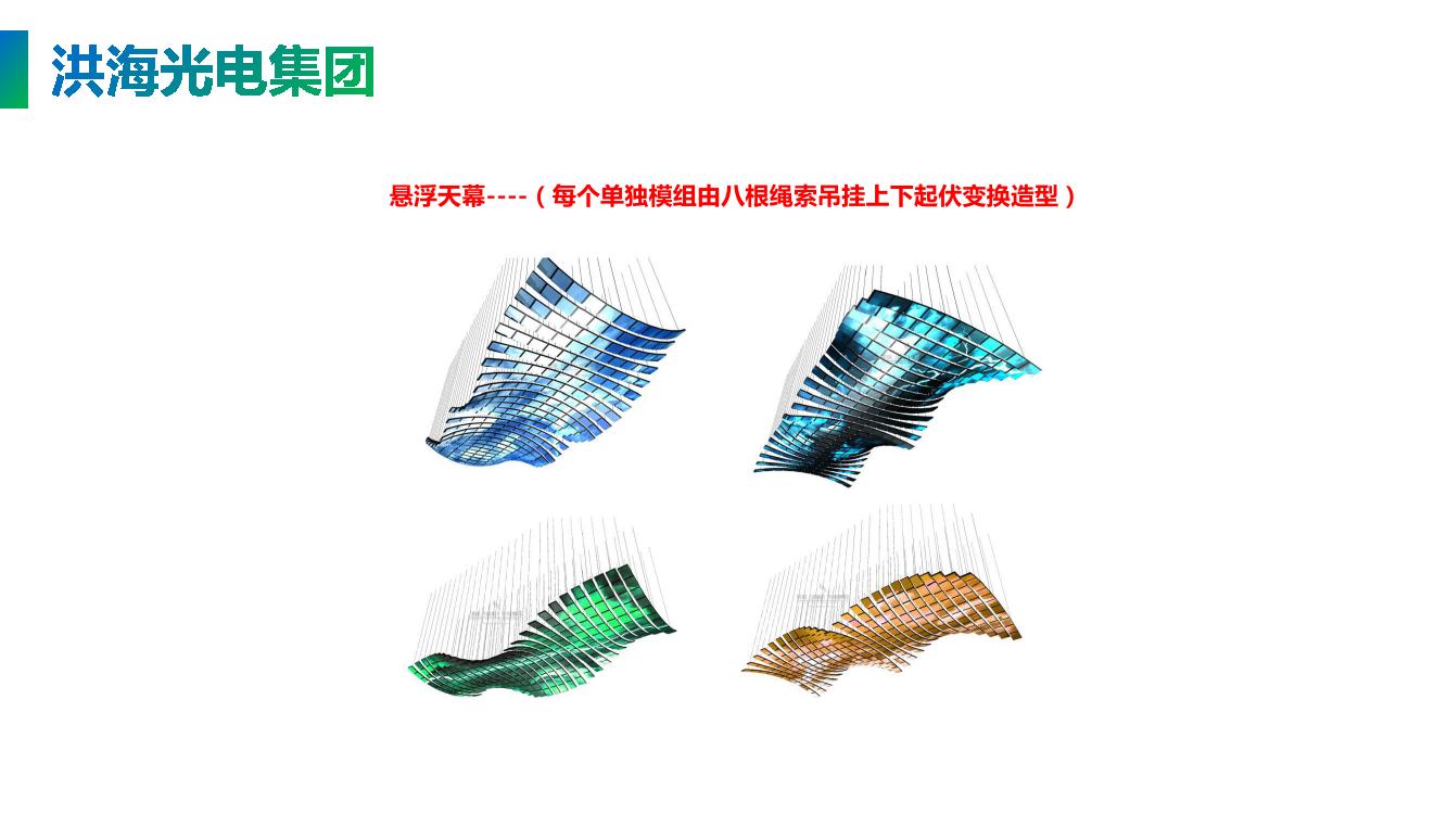 LED天幕可以根據(jù)您的要求定制為平面led天幕,弧形led天幕,異形led天幕等各種造型,并根據(jù)LED天幕的平方數(shù)與視覺距離確定LED天幕的像素,相應(yīng)的像素越高,畫面越清晰,專業(yè)的設(shè)計師為您設(shè)計專屬您的led天幕。為您提供從設(shè)計led天幕效果圖,到生產(chǎn)制作,鋼構(gòu)圖紙設(shè)計,鋼構(gòu)制作,現(xiàn)場安裝調(diào)試一條龍服務(wù),為您解決后顧之憂!